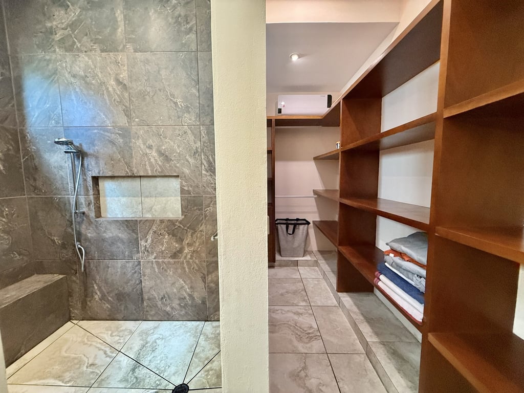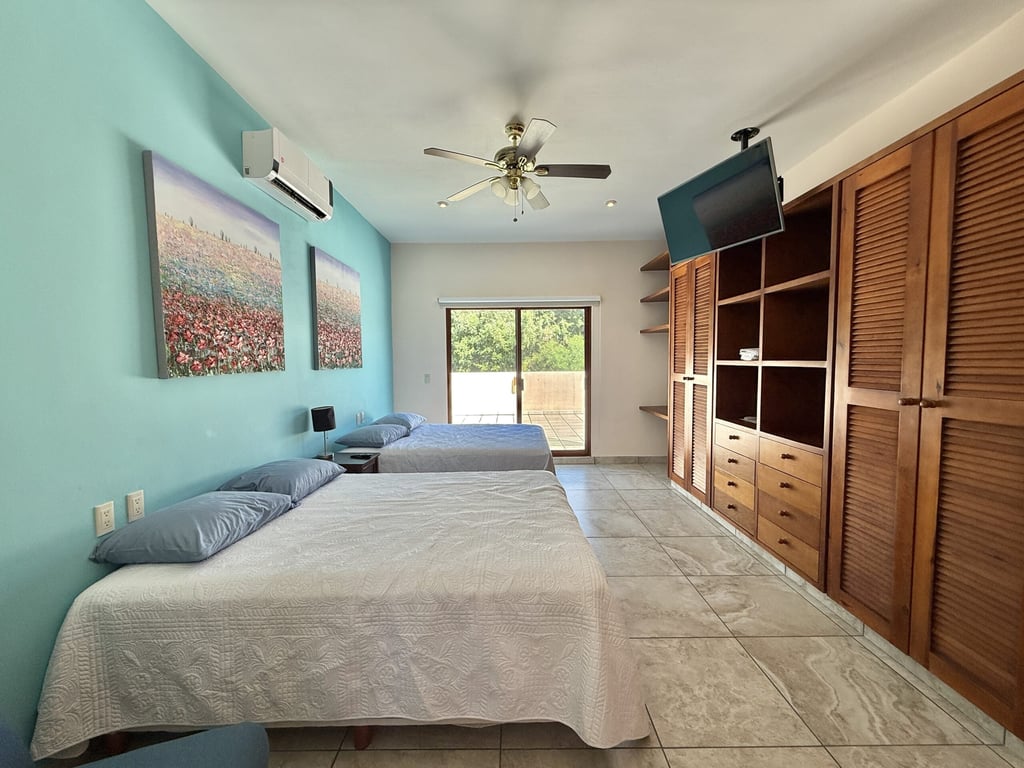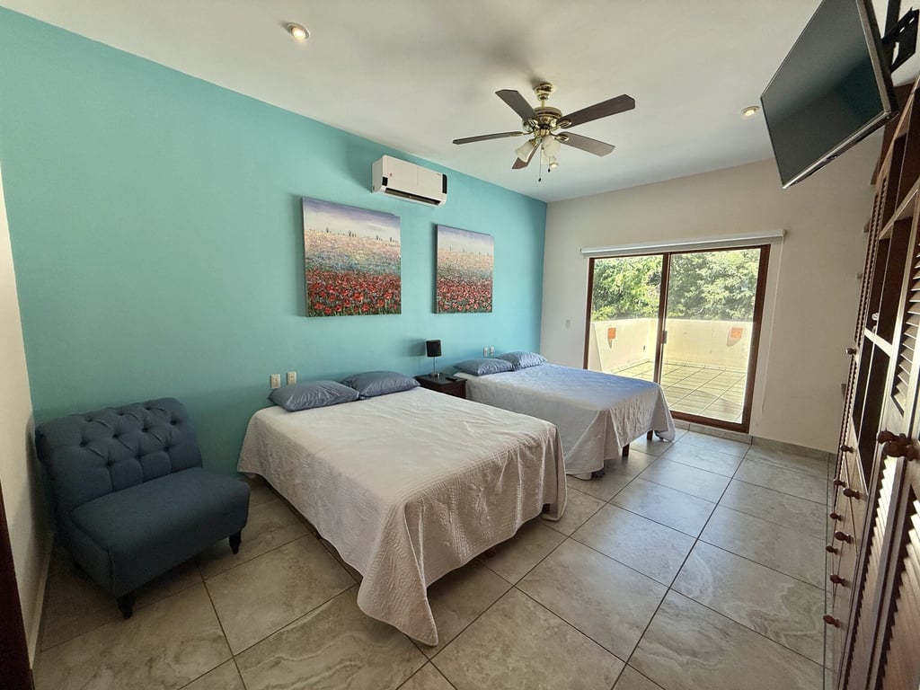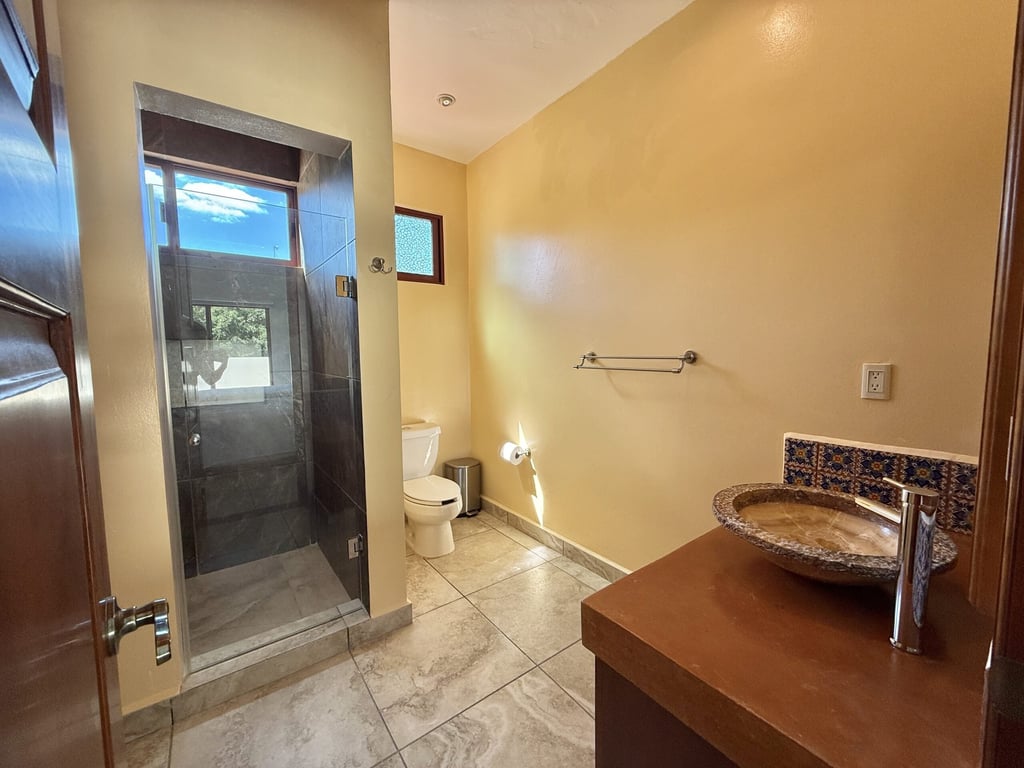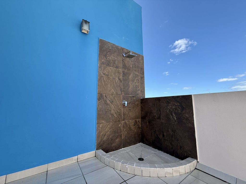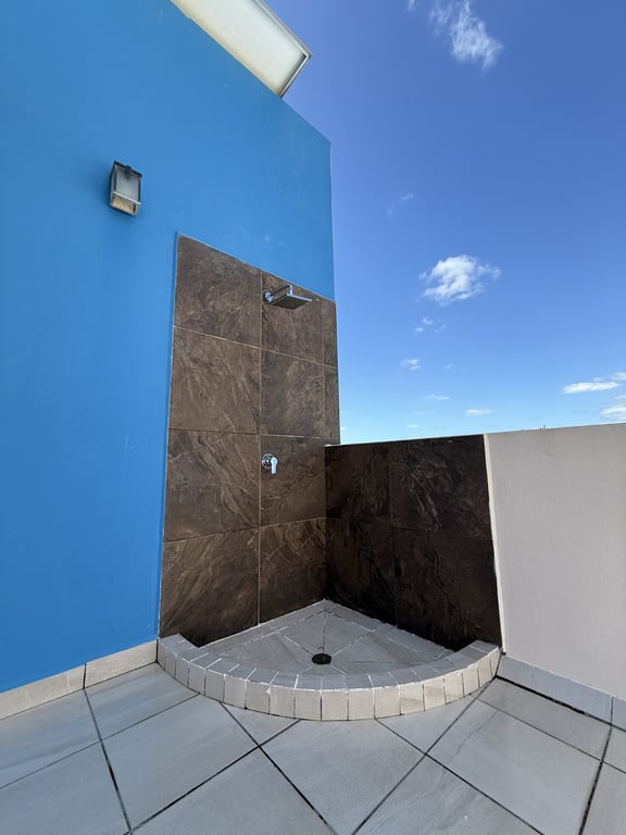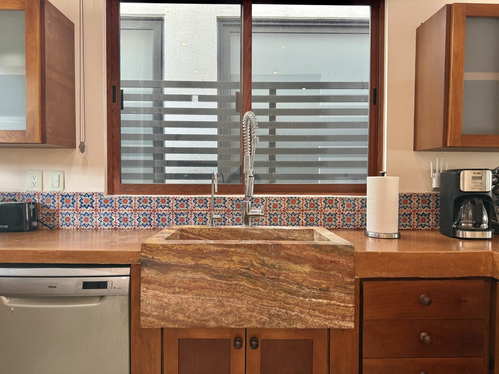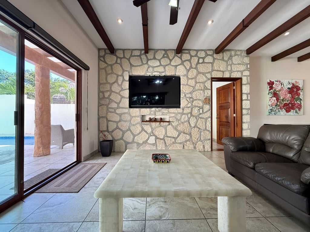 This three-level home in El Cielo combines thoughtful design with authentic Mexican character across 254 square meters of living space. The layout emphasizes natural light and cross ventilation, with generous terraces on each level and handcrafted details throughout including mosaic accents, fine wood carpentry, and artisanal stone finishes. Solar panels provide energy efficiency, while the fully furnished interiors are move-in ready.