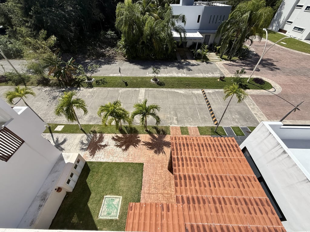 El Cielo is an established gated community known for its residential atmosphere and low-density development. The neighborhood features over 17,000 square meters of green spaces, controlled access with 24-hour security, underground utilities, and dedicated bike paths. The location provides convenient access to Playa del Carmen's beaches, shopping centers, and services while maintaining a quiet, family-friendly environment.