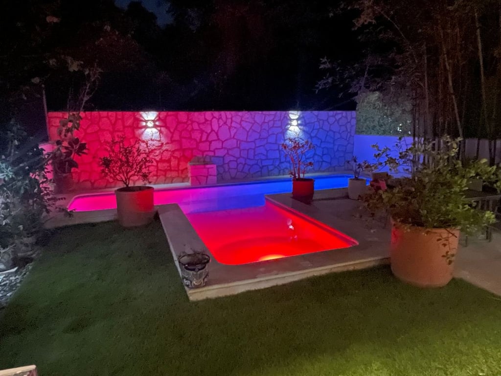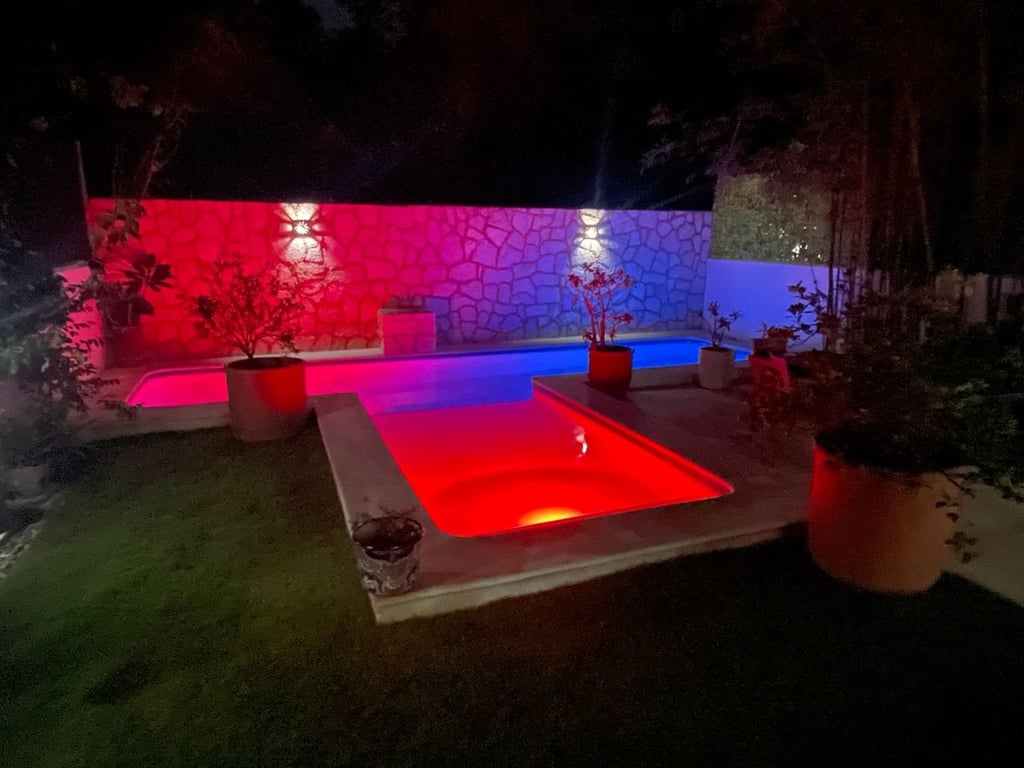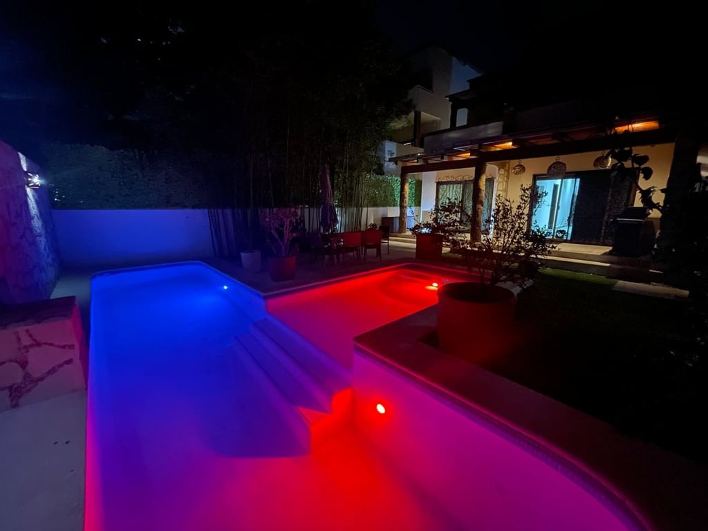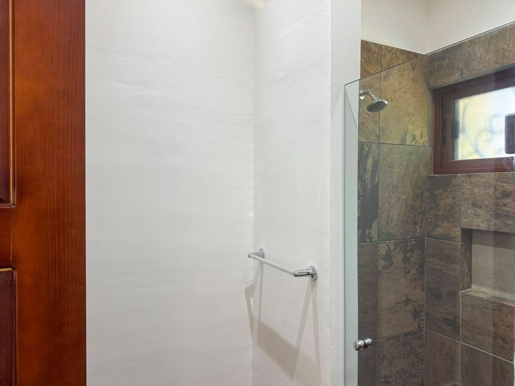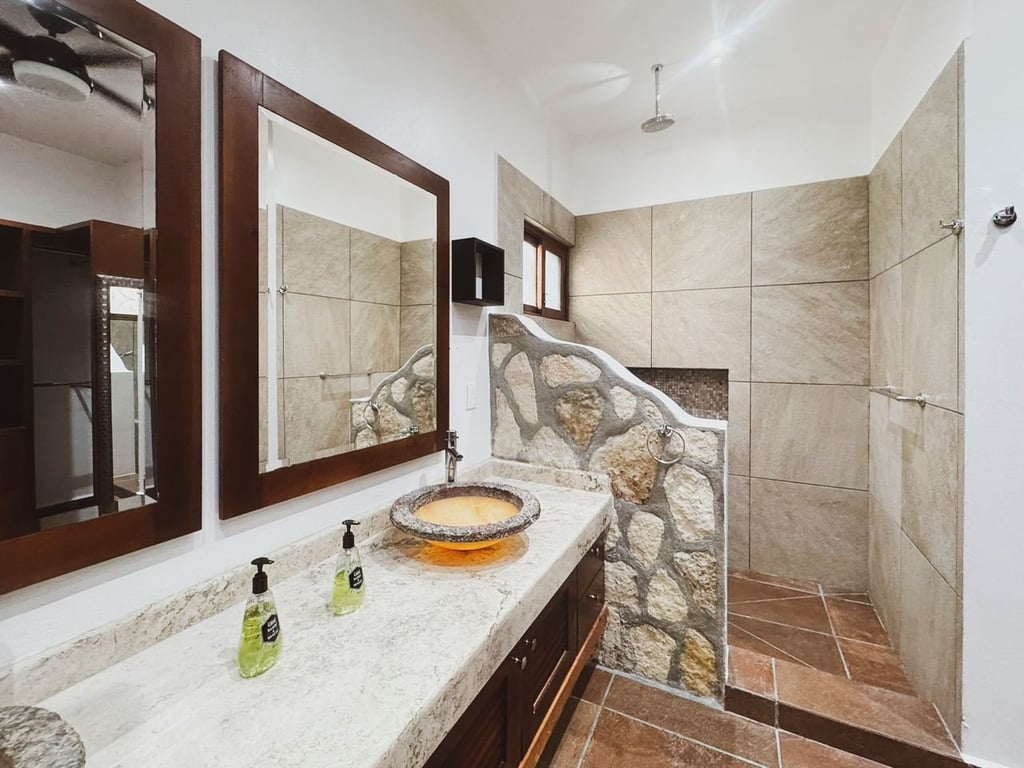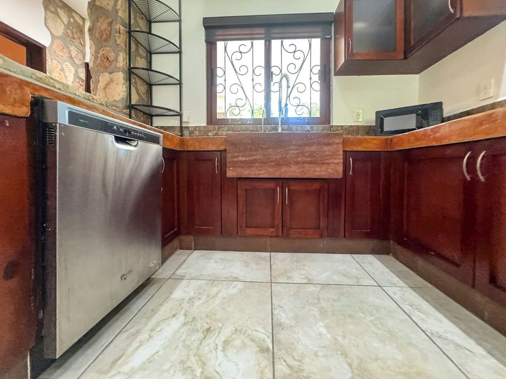 Perhaps most coveted is the private outdoor sanctuary awaiting just beyond the living areas. A crystalline pool serves as the centerpiece of the lush backyard, its inviting waters framed by mature bamboo groves that provide natural privacy screening while adding a tropical ambiance. The covered terrace features a rustic pergola with organic wooden elements, creating the perfect setting for al fresco dining as Caribbean breezes drift through the space. Additional lounging areas scattered throughout the garden offer multiple zones for relaxation and entertainment.