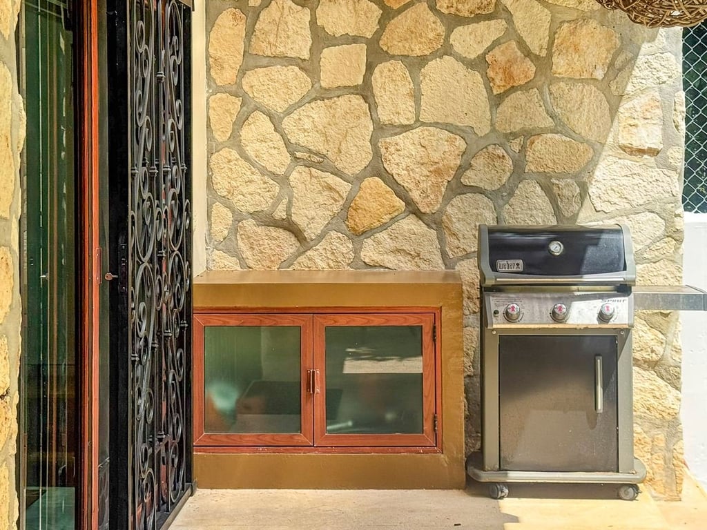 The heart of this home truly shines in the gourmet kitchen, where modern stainless steel appliances integrate harmoniously with handcrafted wooden cabinetry and warm-toned countertops. Every detail has been considered for both functionality and aesthetic appeal, making this space equally suited for casual morning coffee or elaborate dinner party preparation. The natural stone accents continue here, creating visual continuity that ties the entire residence together.