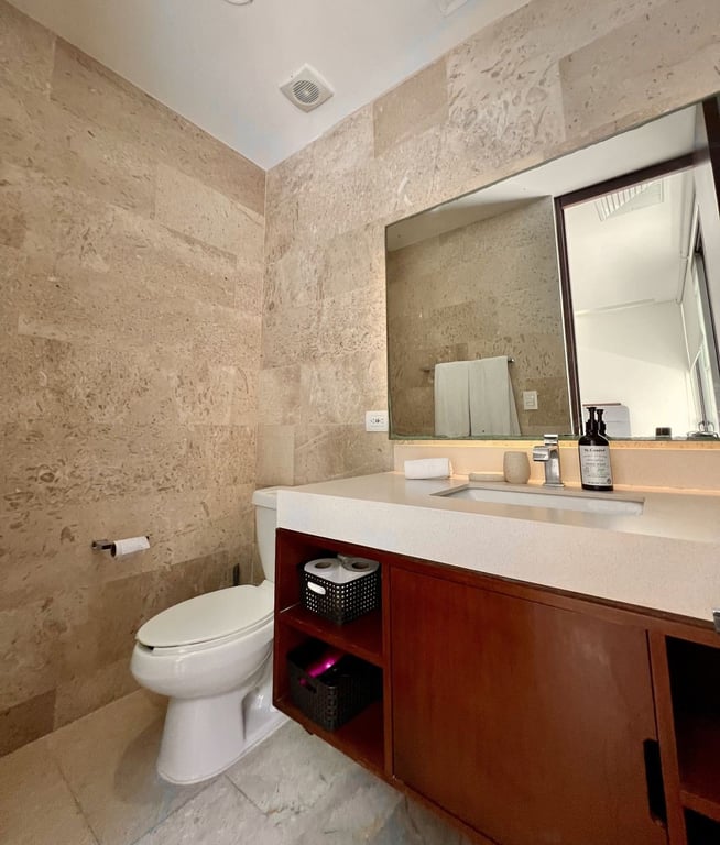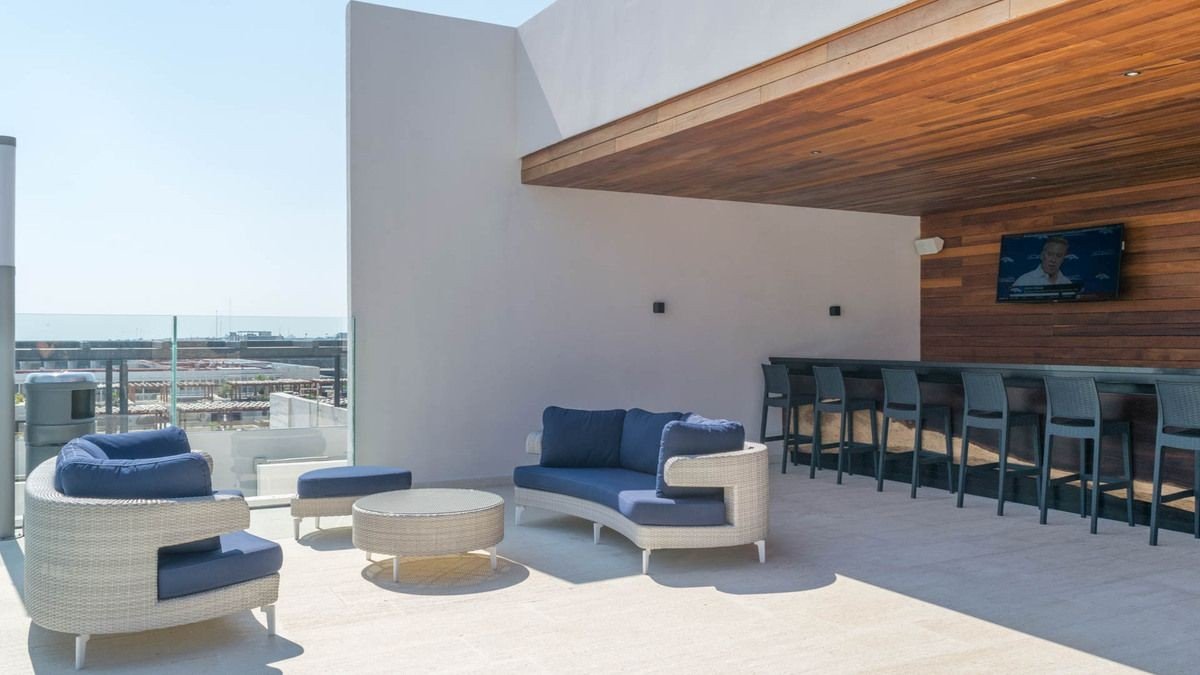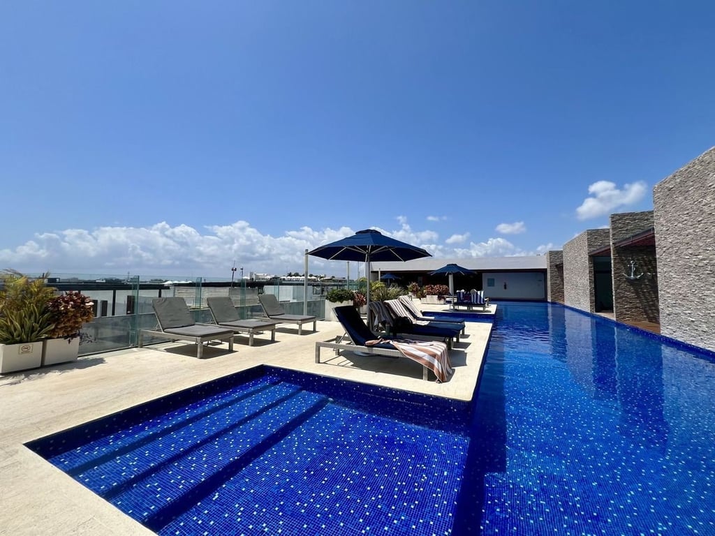 The condominium complex Cruz con Mar stands apart from other Playa del Carmen buildings because of its outstanding facilities. The community benefits from around-the-clock security services and features an infinity pool with ocean views and a business center and underground parking facilities. The building's strategic position near Fifth Avenue and Mamitas Beach places residents at the heart of Playa del Carmen's lively cultural and dining and entertainment district.