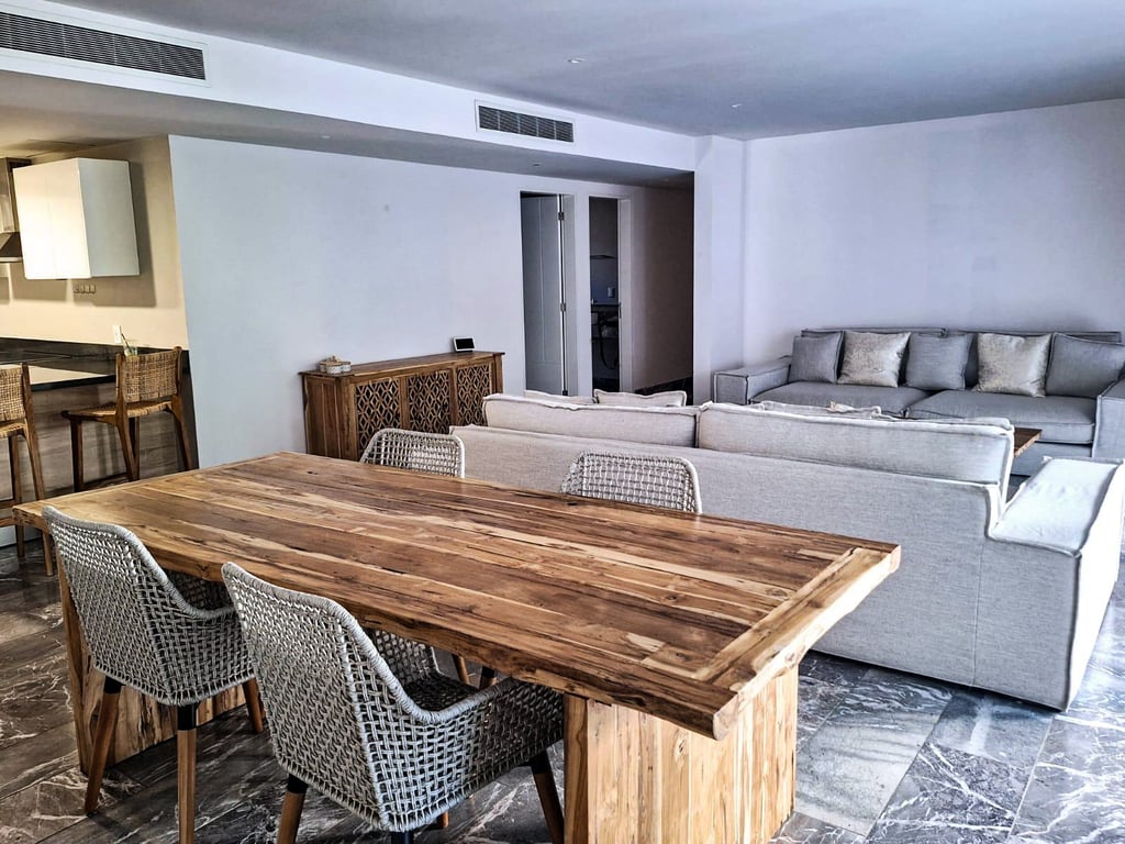 This modern 3 bedroom apartment in Vaiven del Mar is located in the prestigious Playacar fase 2 gated community, offering an ideal blend of nature and convenience. Surrounded by a beautiful golf course, the property enjoys easy access to grocery stores, pharmacies, hospitals, restaurants, and shopping centers, creating a perfect balance of serenity and urban amenities.