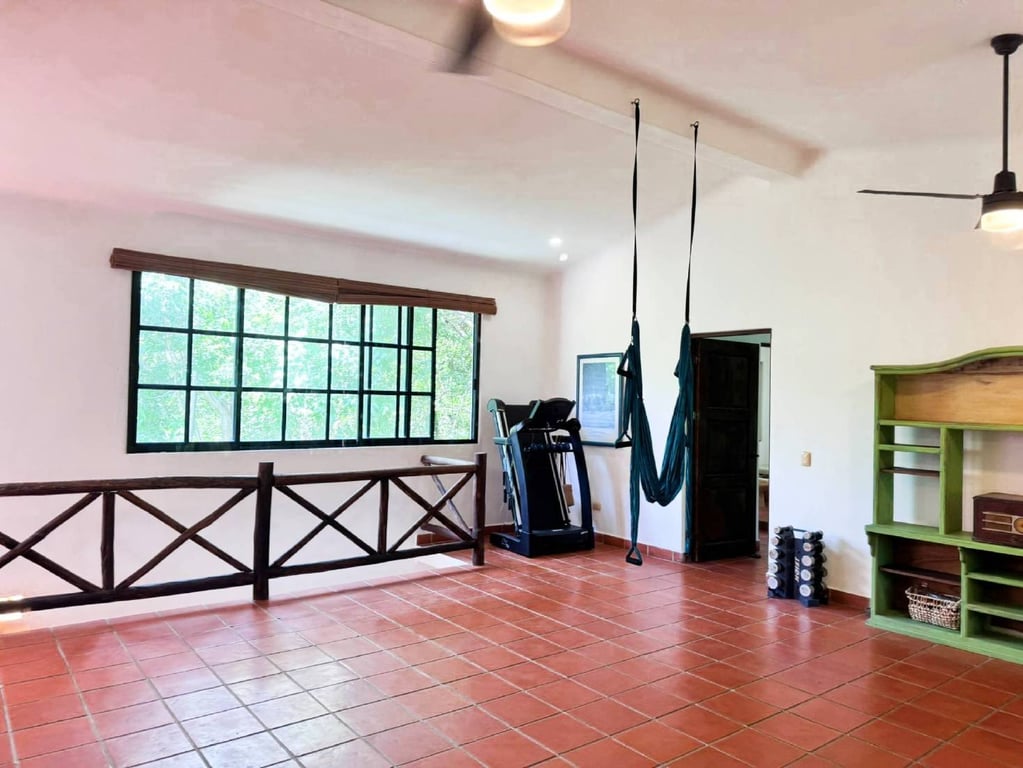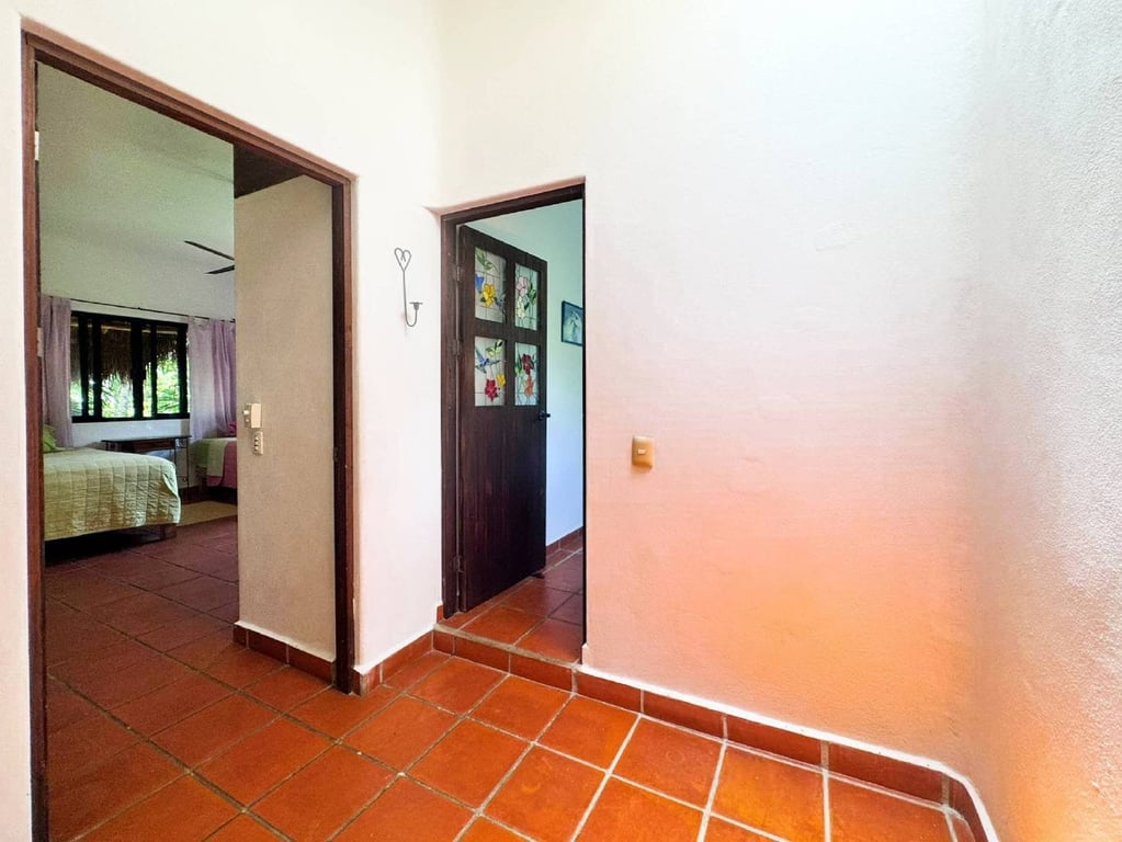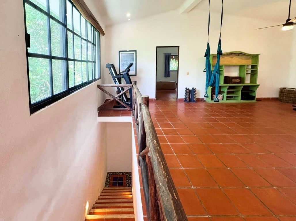 What truly sets this property apart is its extraordinary natural setting. Mature cecropia trees, towering palms, and dense tropical vegetation create a private jungle canopy that provides both privacy and a constant connection to nature. Stone pathways wind through the lush landscaping, leading to quiet seating areas perfect for morning coffee or evening reflection.