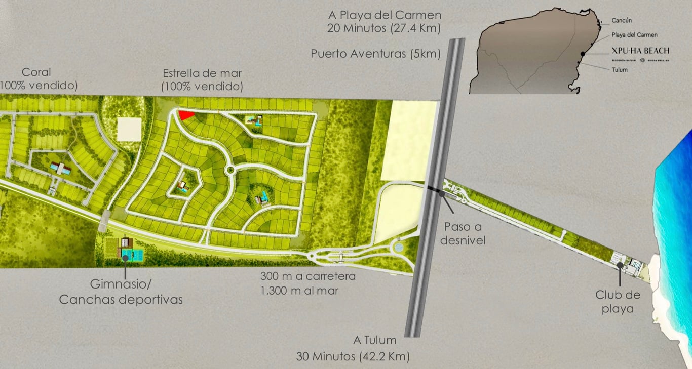 XPU-HA BEACH is a new residential / tourist development located 20 minutes south of Playa del Carmen and 30 minutes from Tulum.