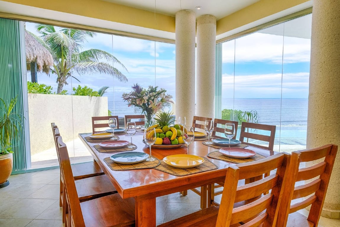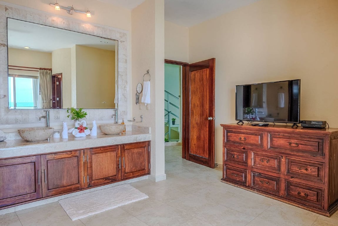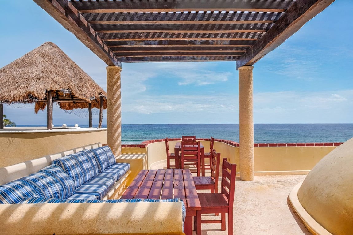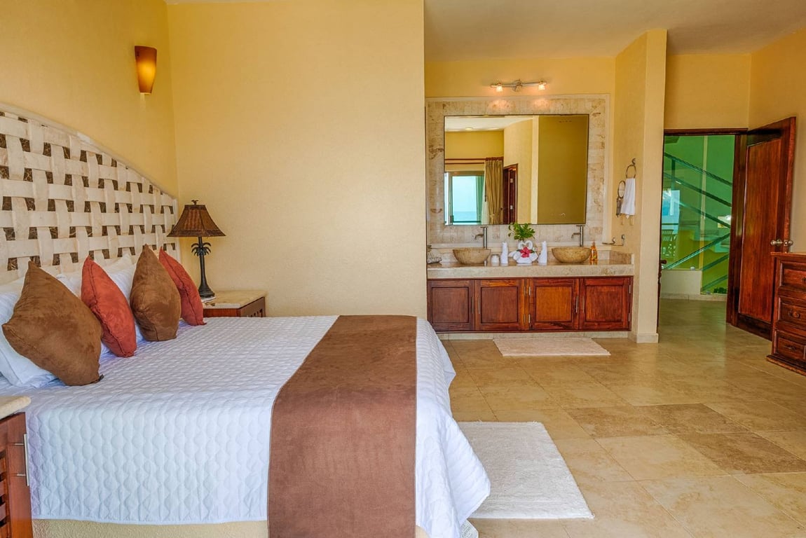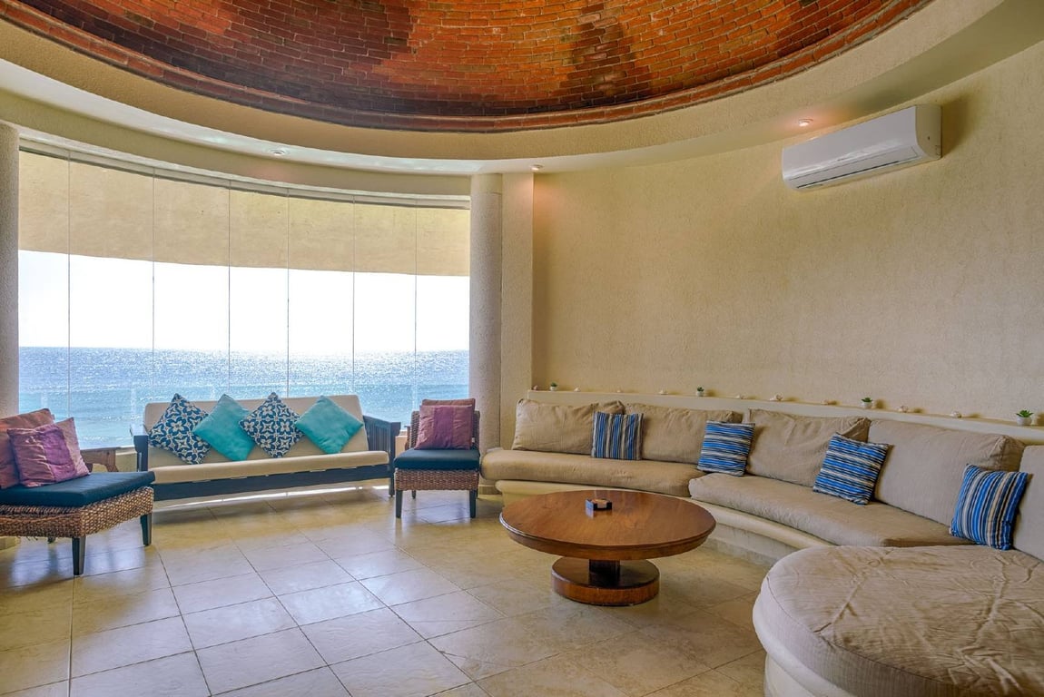 The villa's design honors traditional Mexican architecture while embracing contemporary coastal living. A handcrafted brick cupula crowns the second-story entertainment room, creating visual interest and natural ventilation that speaks to generations of tropical building wisdom. Throughout the 4,300 square feet of interior space, warm textures and thoughtful details create spaces that feel both refined and welcoming.