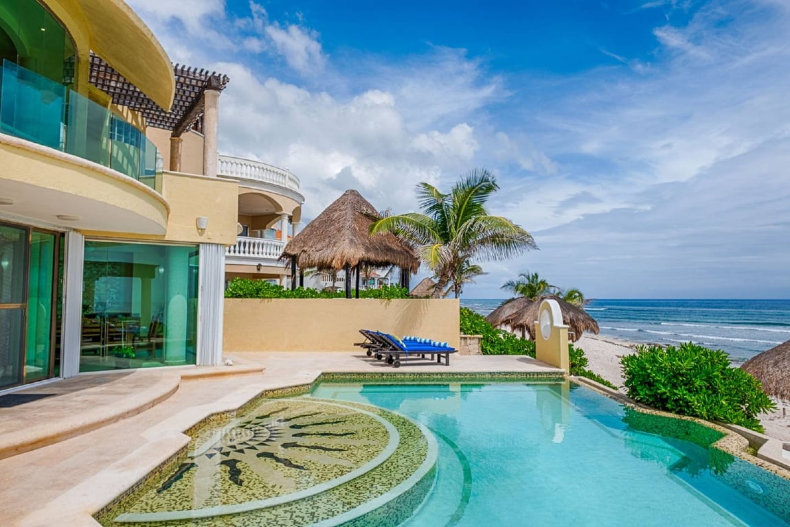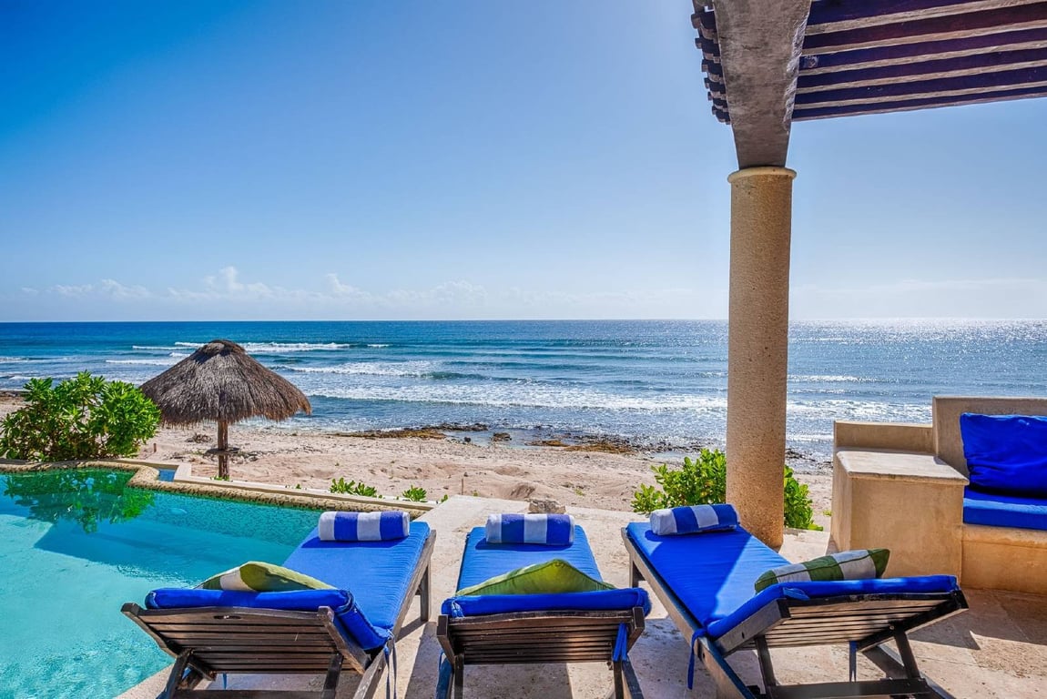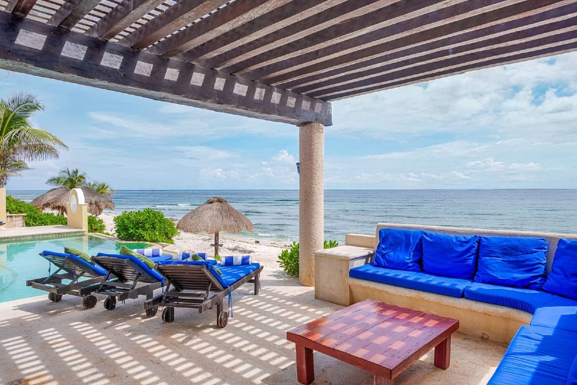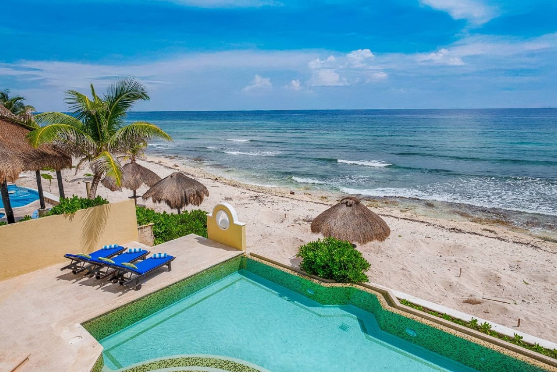 There's something rare about a beachfront property that feels both established and untouched. Villa Arghy achieves exactly that balance—a four-bedroom sanctuary positioned directly on the powdery sands of Tankah Bay, where the rhythm of Caribbean waves replaces the noise of everyday life.