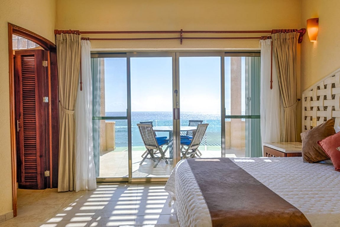 The ground floor accommodates two bedrooms, including an ocean-view suite with direct terrace access—ideal for those who appreciate waking to the sound of waves. This layout works beautifully for guests or multigenerational families who value both togetherness and privacy.