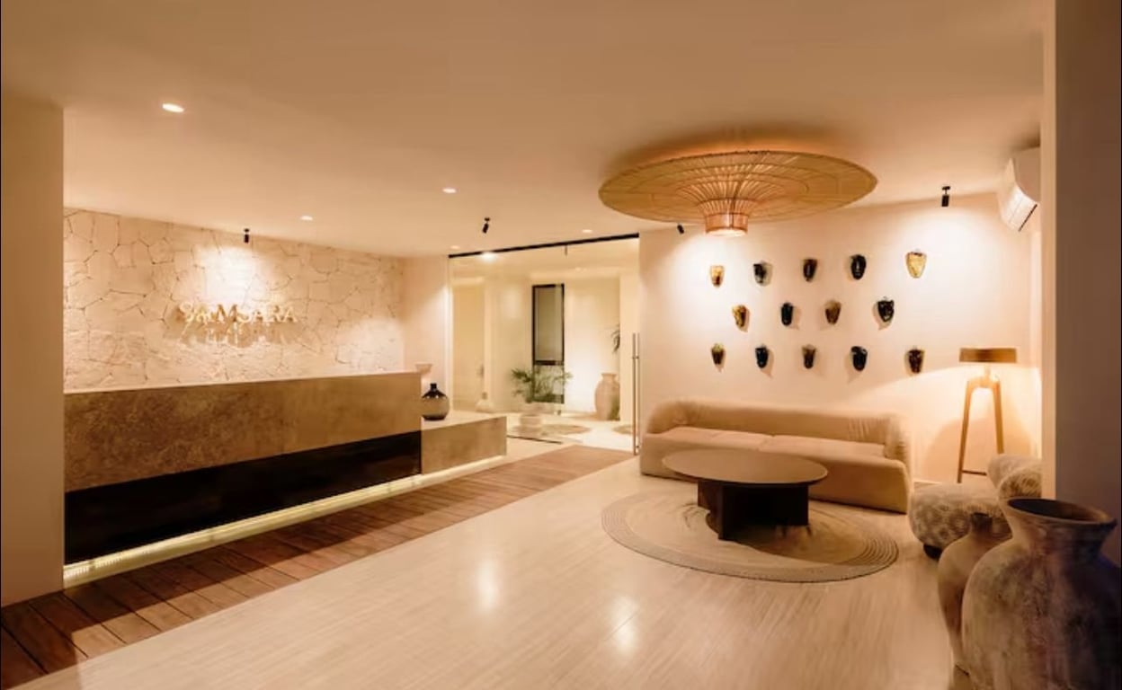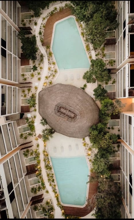 Perhaps most remarkable are Samsara's world-class amenities, which rival the finest boutique resorts. Multiple swimming experiences await, from the stunning rooftop infinity pool with its sweeping jungle-to-ocean panoramas to the intimate courtyard pool surrounded by lush tropical landscaping and a magnificent traditional palapa lounge. The state-of-the-art fitness center features floor-to-ceiling windows framing inspiring views, while the dedicated yoga studio provides a serene space for mindful practice. A sophisticated co-working lounge caters to remote professionals, and thoughtfully designed fire pit gathering areas create magical settings for evening socializing.