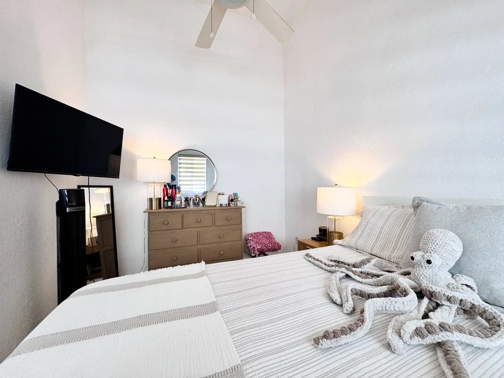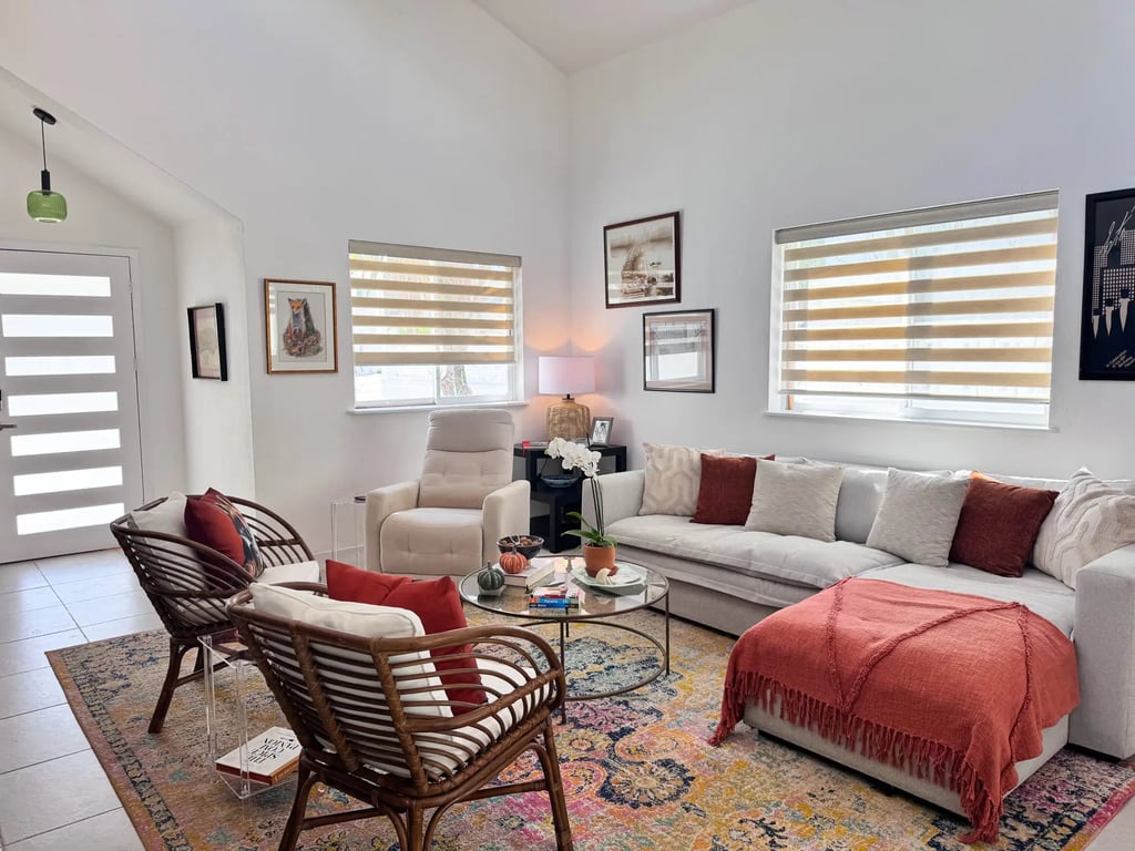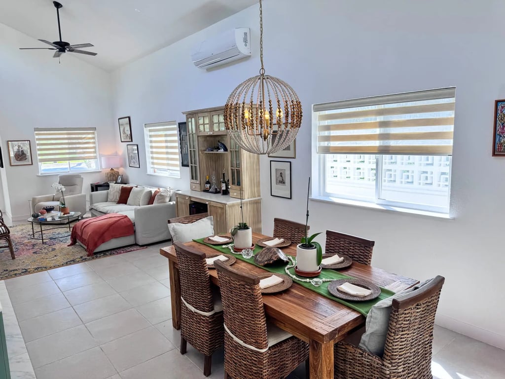 The villa comes fully furnished and equipped with essential appliances including dishwasher, washer, dryer, refrigerator, and gas range. This turnkey presentation makes it particularly suitable for buyers seeking immediate occupancy or rental-ready investment property. The single-story layout eliminates stairs, appealing to families with young children, retirees, or anyone preferring single-level living.