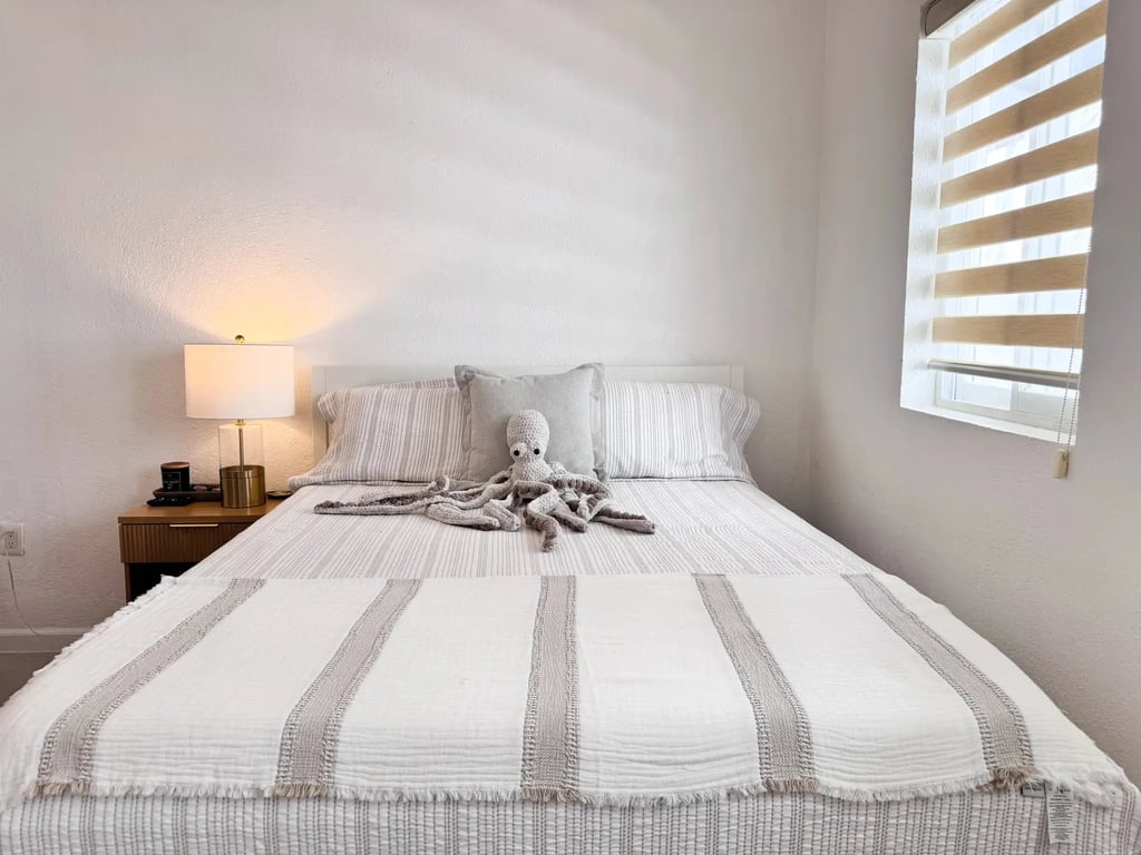 The interior layout provides practical living spaces with tile flooring throughout, a kitchen island for casual dining, and spacious common areas that flow naturally to outdoor spaces. The master suite includes a soaking tub, while both bathrooms feature glass shower doors and quality fixtures. Recent upgrades ensure the home is move-in ready without requiring immediate renovation work.