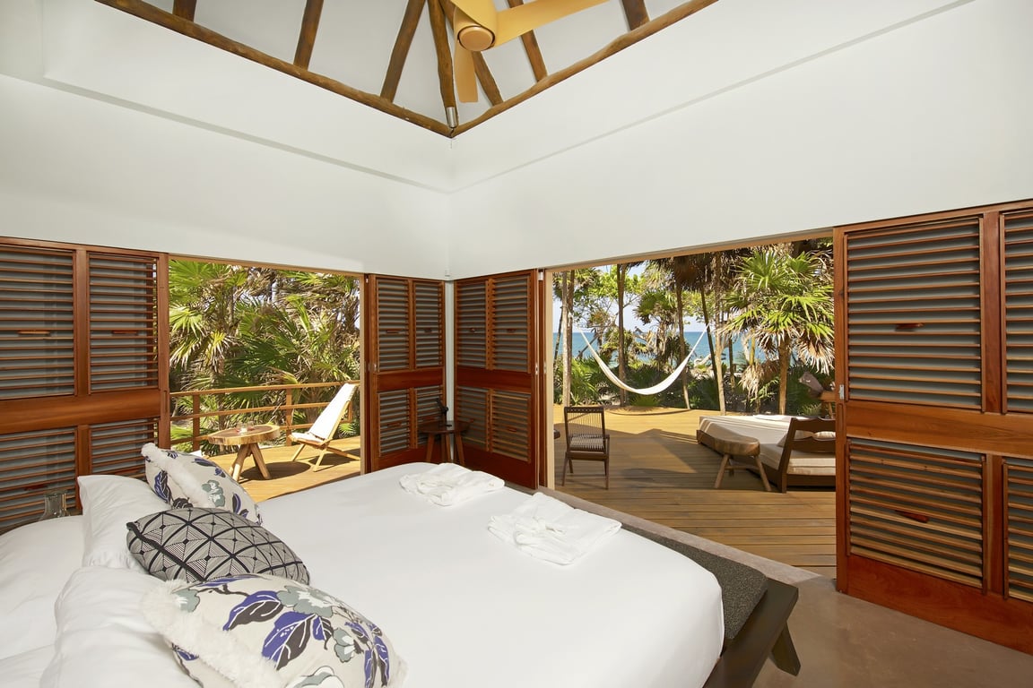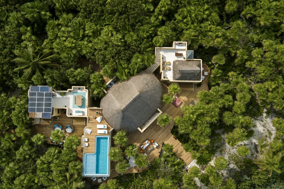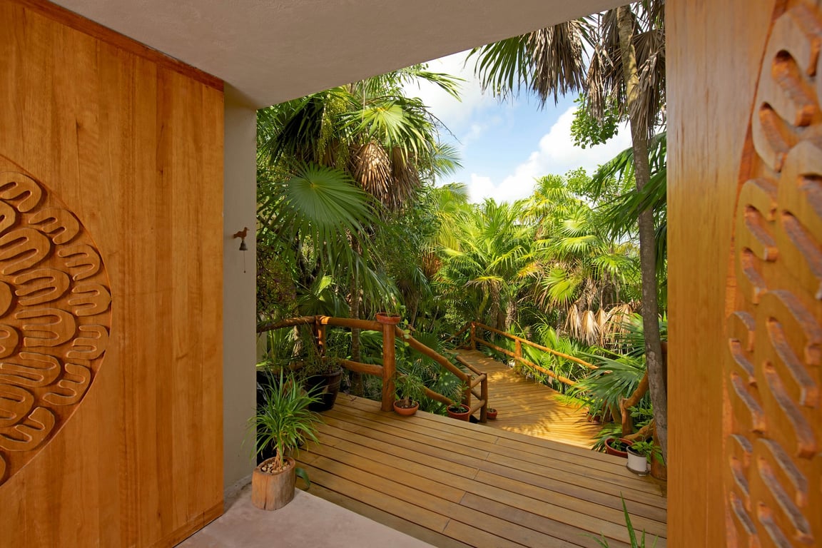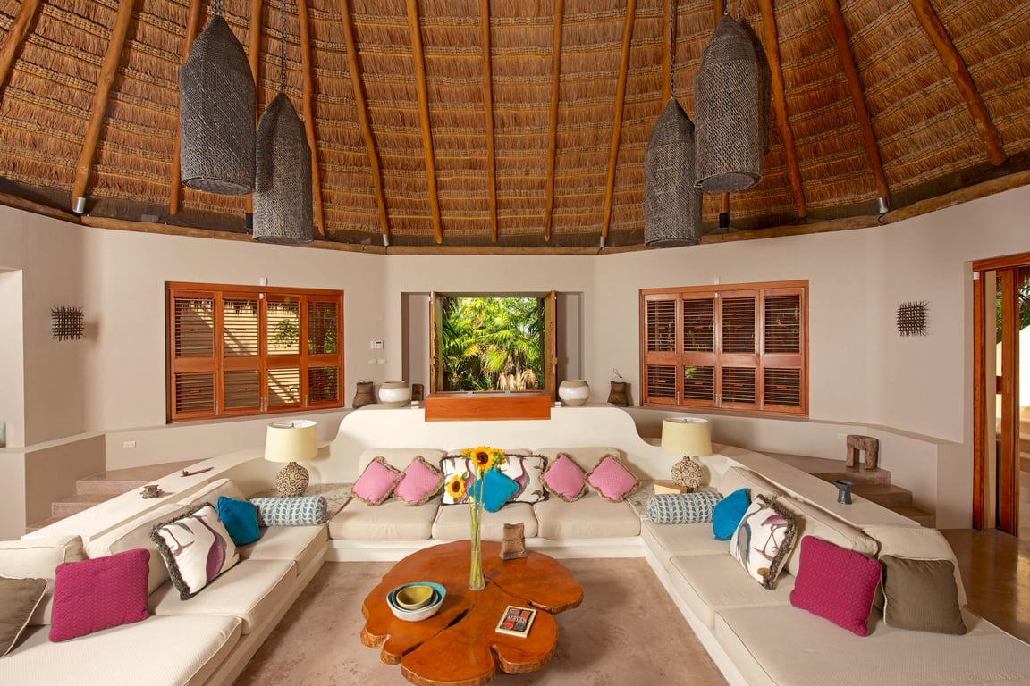 This majestic Villa is located in the Biosphere of Sian Ka’an, the main ecological reserve at the Riviera Maya. The zone is characterized for its flora and fauna diversity, which are protected, and this is the reason why restrictions regarding environment impact and density are very strict. Only single family homes are allowed every 86 meters of beachfront.