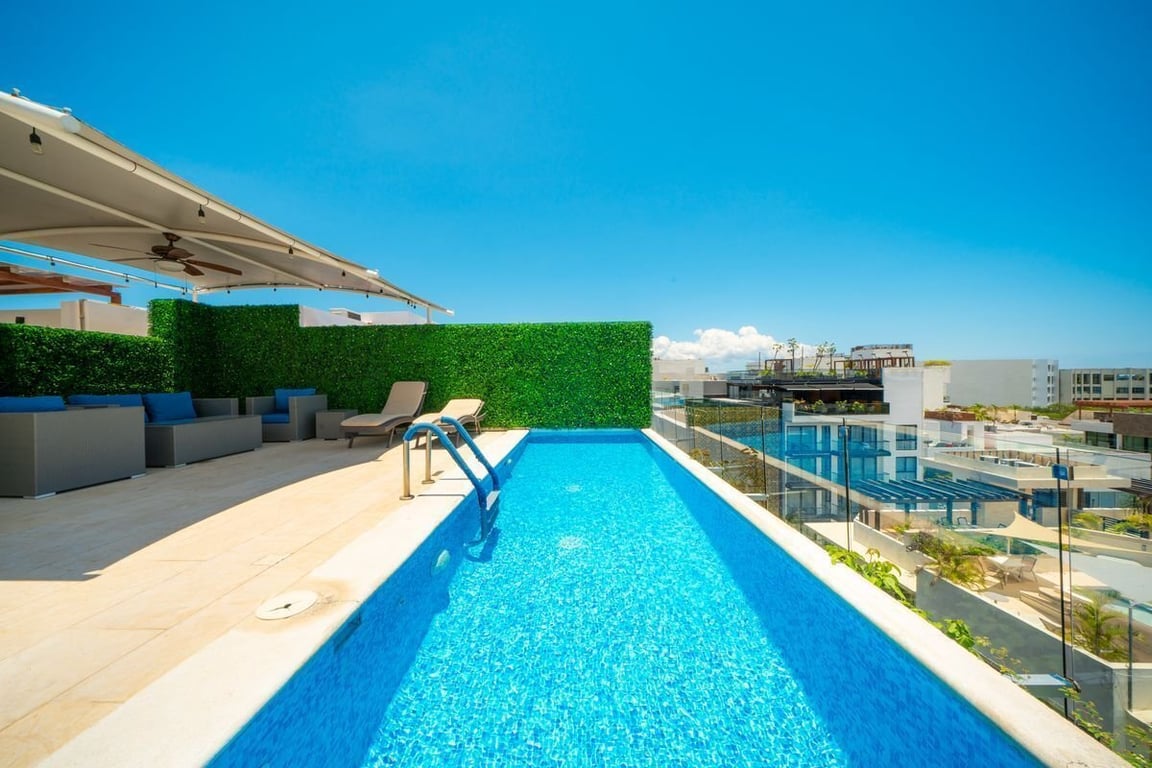 One of the standout features of this development is the rooftop infinity pool with breathtaking panoramic ocean views. Relax at the poolside bar, enjoy a cocktail, and take in the stunning Caribbean scenery.