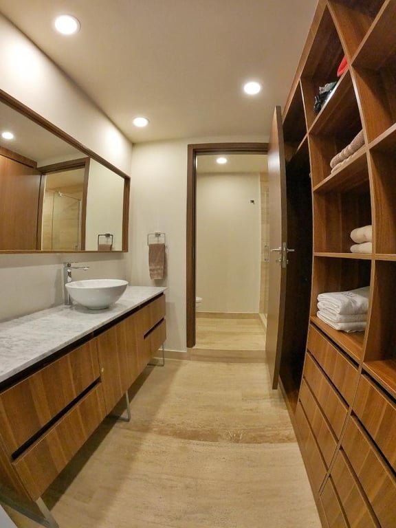 This contemporary penthouse building within the exclusive Playacar neighborhood provides residents with more than beautiful living areas because it creates a lifestyle. The rooftop terrace functions as your exclusive retreat for both morning coffee time and evening star-gazing while showcasing Caribbean lifestyle views.