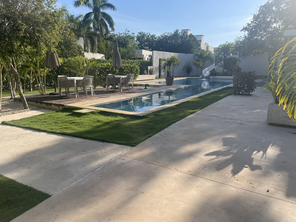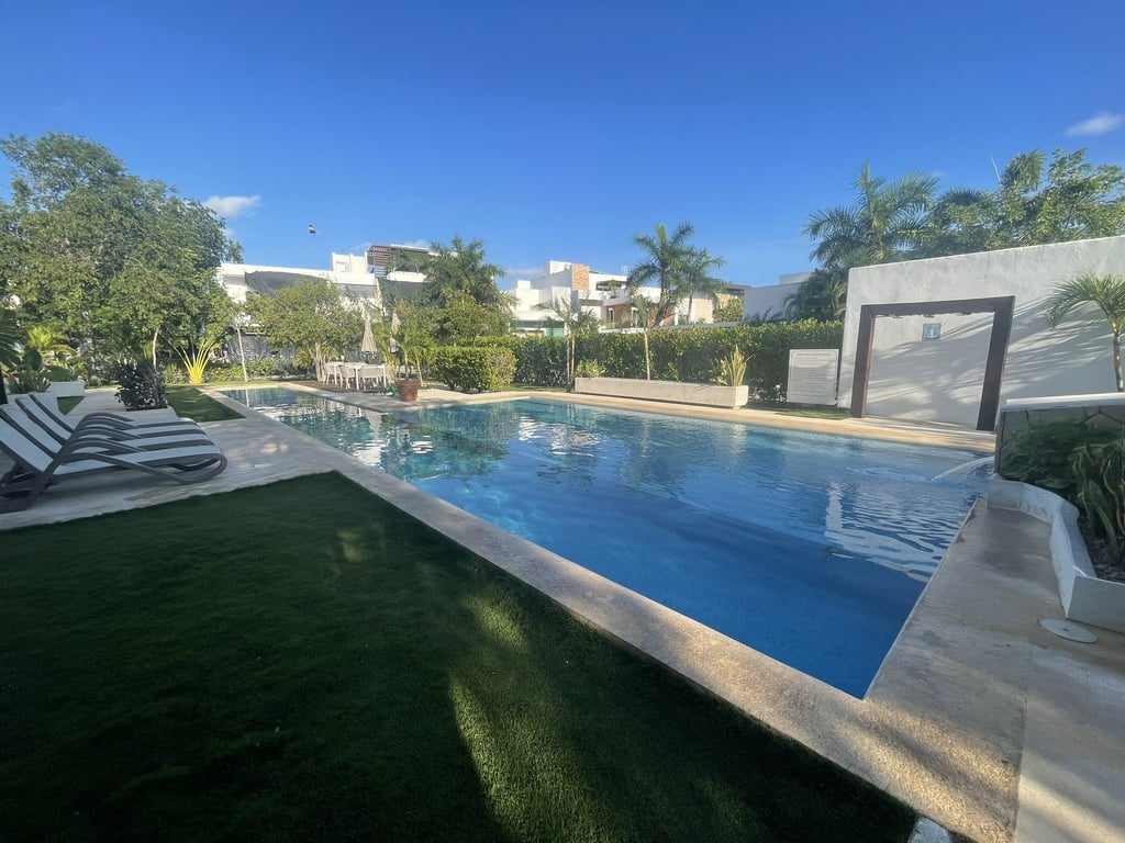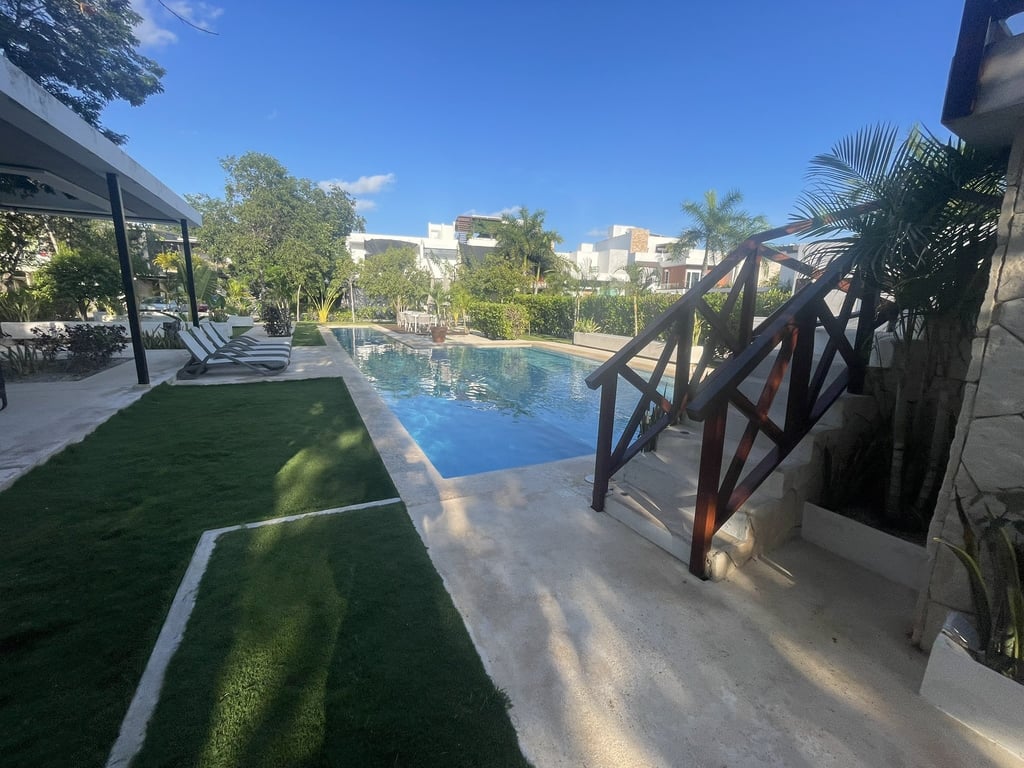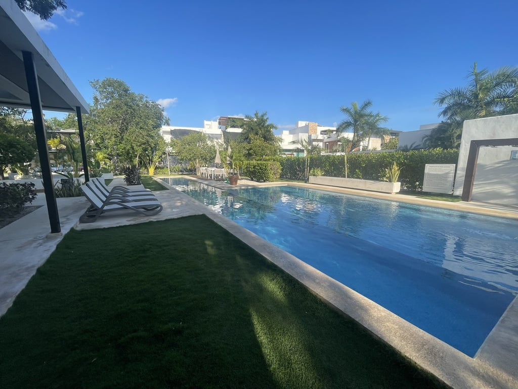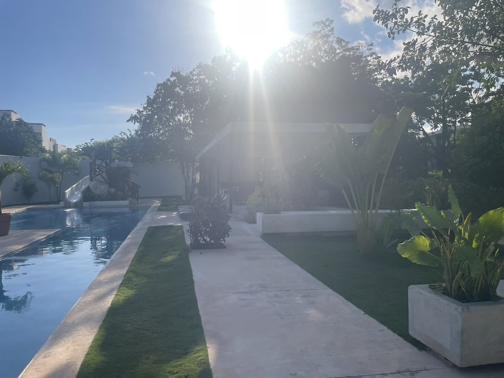 Beyond your private domain, the Bosques de Bambú community delivers unparalleled amenities: twenty-four-hour security ensures peace of mind, while the resort-style swimming pool with dedicated children's area and lap lane transforms everyday living into a vacation lifestyle. The social palapa, playground, solarium, and outdoor showers create countless opportunities for connection and relaxation. Pet-friendly policies welcome your four-legged family members into this exceptional environment.