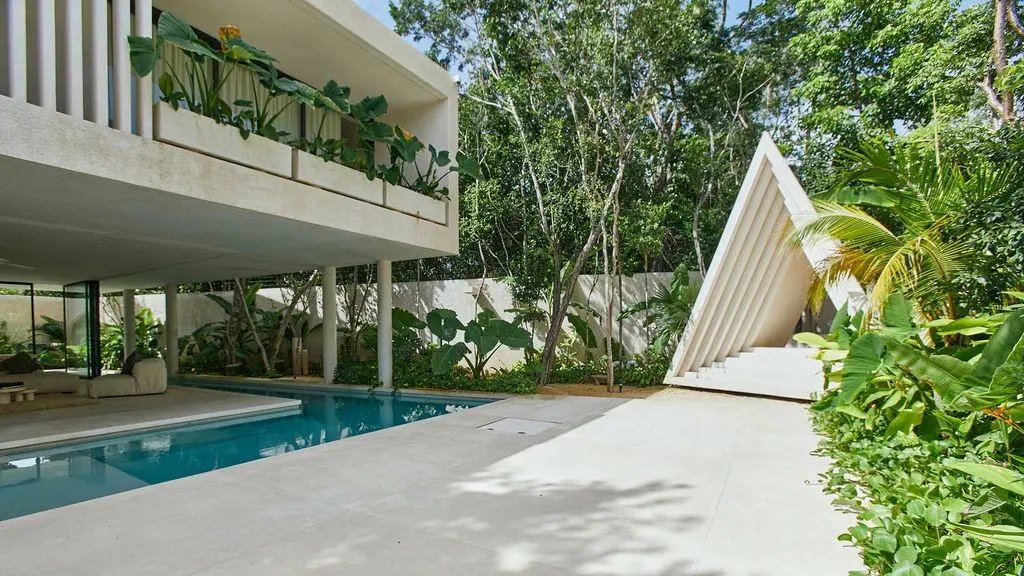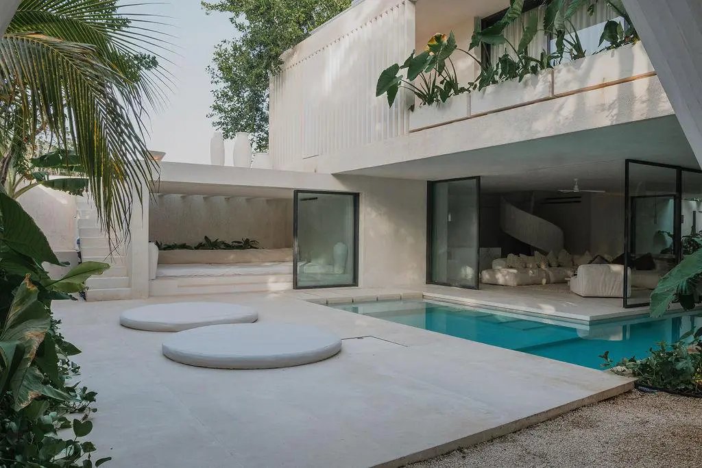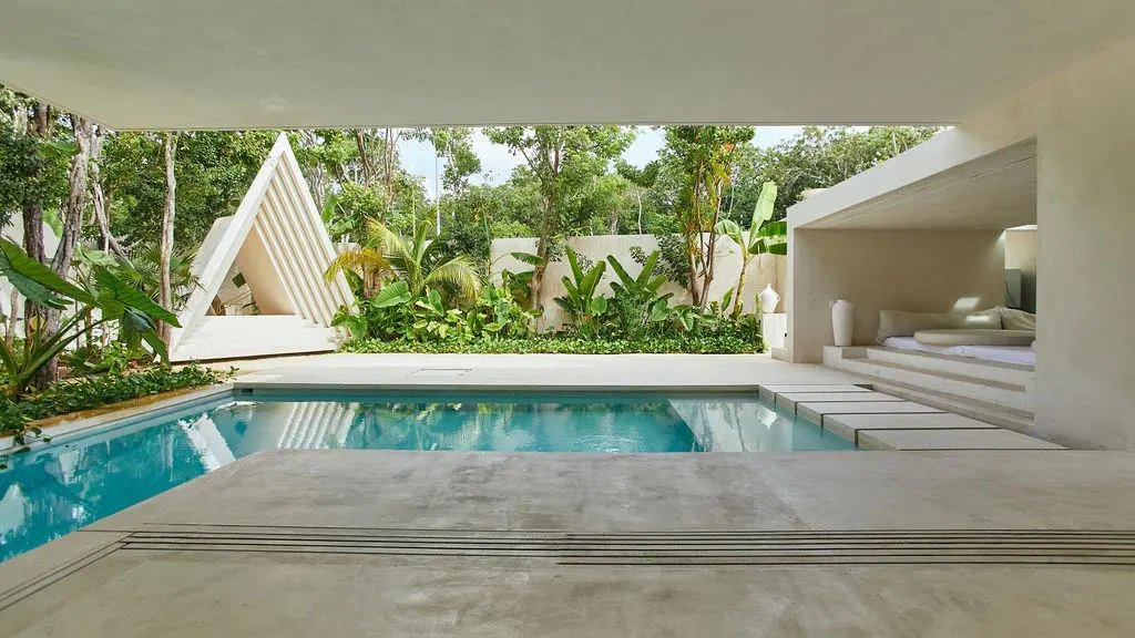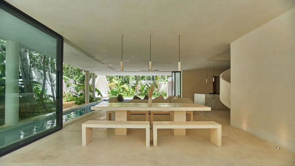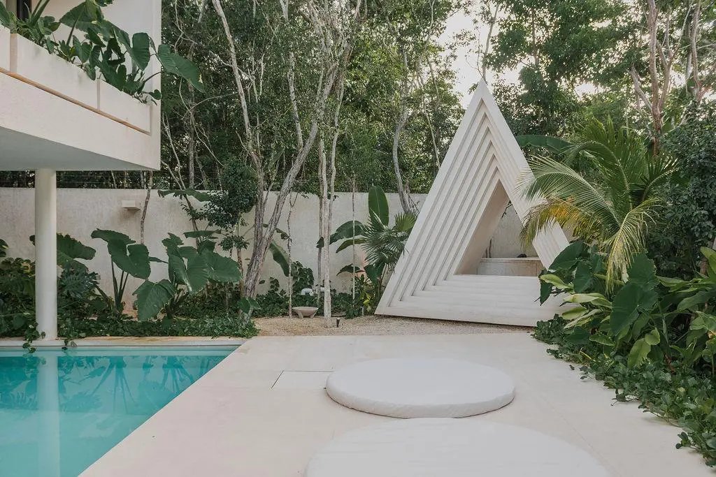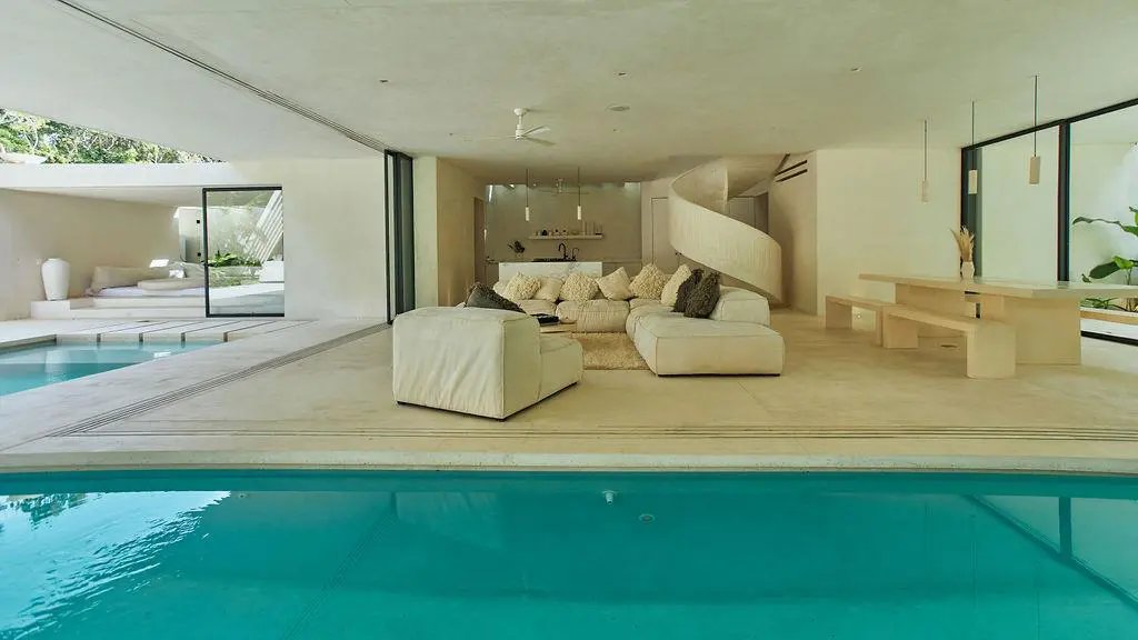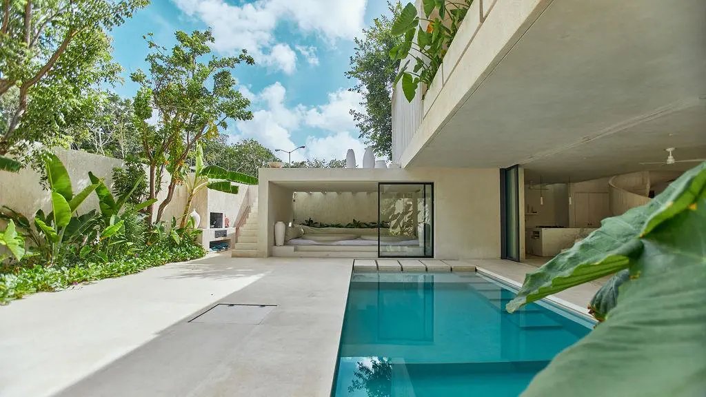 Step through a circular doorway – an architectural homage to the Eye of Horus – and discover a residence that redefines luxury living in Tulum. This masterpiece by CoLab Design spans 8,310 square feet of thoughtfully curated space, where every detail tells a story of sophistication and connection with nature.