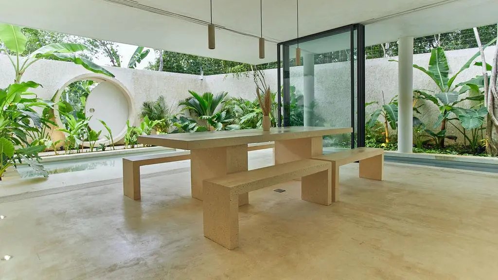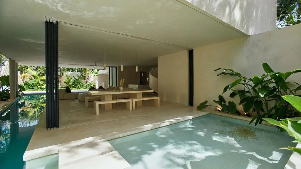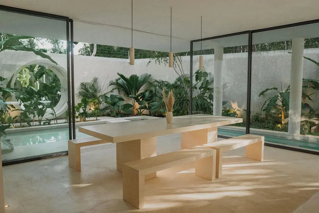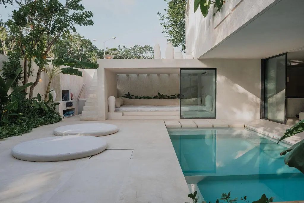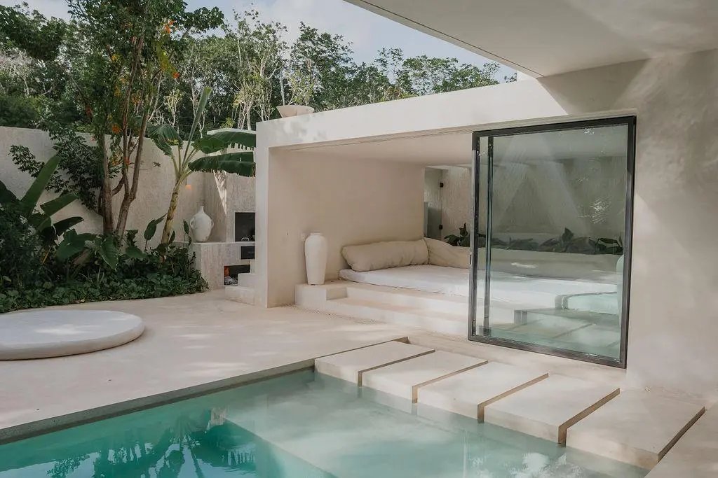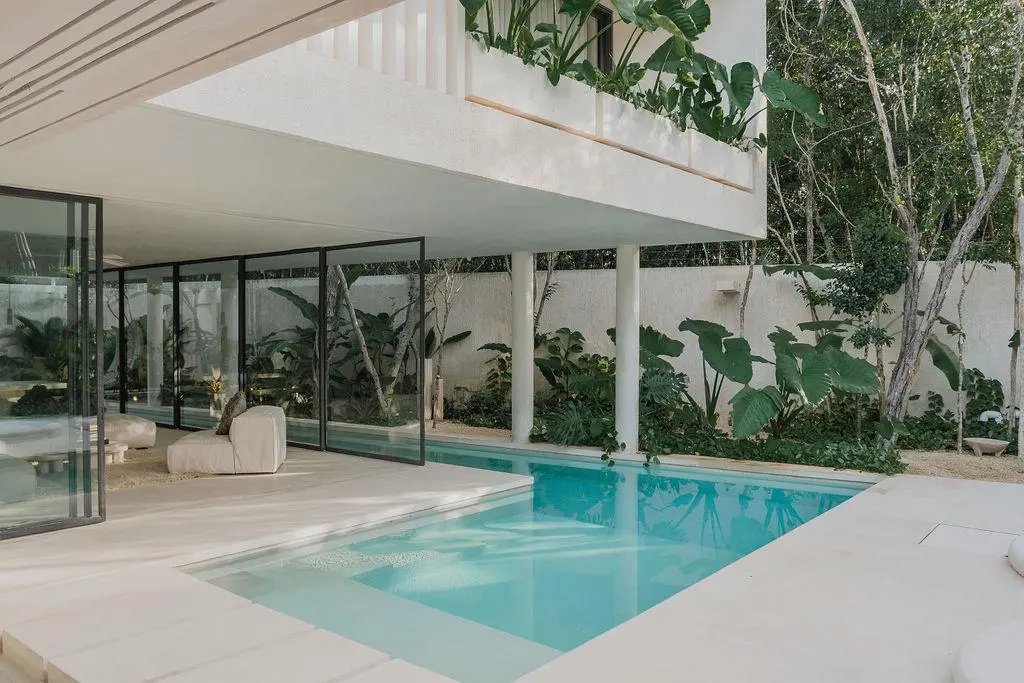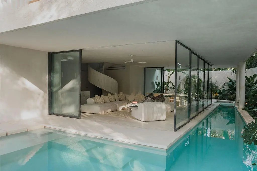 Step through a circular doorway – an architectural homage to the Eye of Horus – and discover a residence that redefines luxury living in Tulum. This masterpiece by CoLab Design spans 8,310 square feet of thoughtfully curated space, where every detail tells a story of sophistication and connection with nature.
