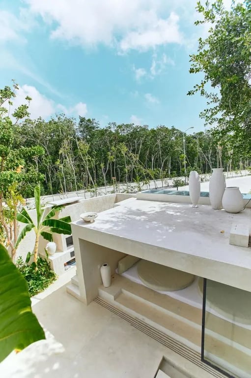 Situated on a premium corner lot in Aldea Premium, this home represents more than just luxury – it's a sanctuary where ancient symbolism meets modern architecture. The property's thoughtful design creates spaces that feel both grand and intimate, with panoramic views that connect you to Tulum's vibrant downtown energy.